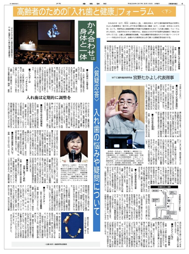 2017年3月15日の産経新聞の夕刊に、1月23日に行った「病は口からやってくる」講演会後の質疑応答の記事が掲載されました。